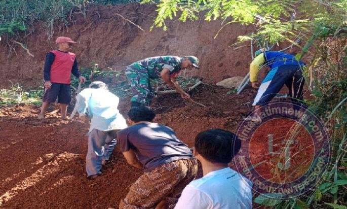 ” Setelah mengecek lokasi, kami bersama warga atau tetangga terdekat langsung melakukan tindakan penanganan dengan kerja bakti membersihkan atau mengangkat tanah yang menimpa dan masuk rumah milik Bapak Tohari. ” kata Serda Agus Hariyanto