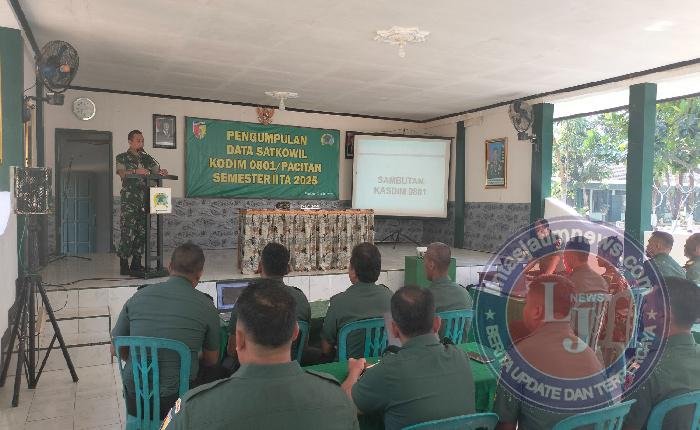 PACITAN lintasjatimnews – Kodim 0801/Pacitan menggelar kegiatan pengumpulan Data Satkowil (Satuan Komando Kewilayahan) Kodim 0801/Pacitan, bertempat di Aula Kopral Sigit Makodim 0801/Pacitan, Jl. Letjend Suprapto No.42, Pacitan, pada Selasa (22/7/2025), Kegiatan ini merupakan suatu proses kegiatan pngumpulan Data Satkowil dilaksanakan oleh satuan tingkat Korem maupun Kodim.