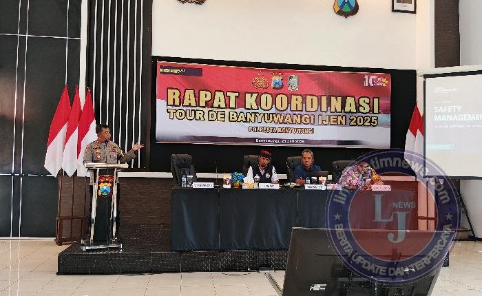 Polresta Banyuwangi menggelar Rapat Koordinasi Pengamanan bersama unsur TNI-Polri, panitia penyelenggara, serta instansi terkait lainnya, bertempat di Rupatama Polresta Banyuwangi, Rabu (23/7/2025).