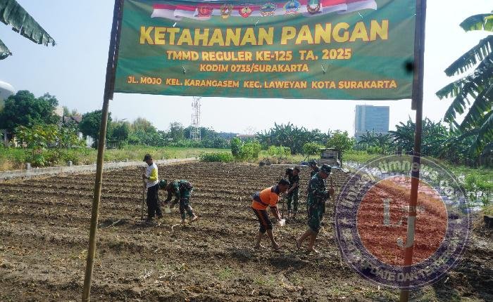 SURAKARTA lintasjatimnews – Satgas TMMD Reguler ke-125 Kodim 0735/Surakarta bersama dengan warga masyarakat melakukan penanaman jagung di lahan yang telah disiapkan yakni di Kelurahan Karangasem, Kecamatan Laweyan, Sabtu (26/07/2025).