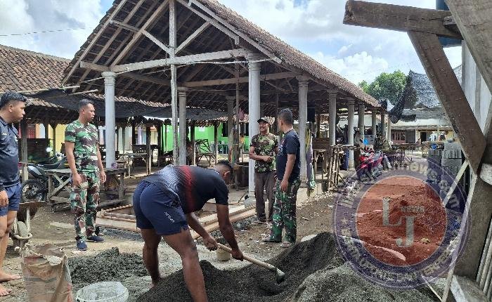 Tampak dalam foto, para anggota TNI dan warga bekerja sama dalam proses pengecoran dasar dan pemasangan saluran pembuangan. Tak hanya tenaga, warga juga turut serta memberikan dukungan material demi kelancaran pembangunan.
