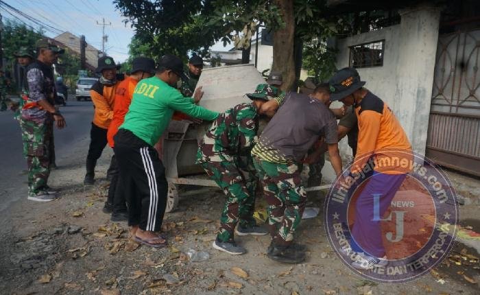 Semangat selalu tertanam pada segenap anggota TNI yang tergabung dalam Satgas TMMD Reguler ke-125 Kodim 0735/Surakarta, Dedikasi Terbaik membangun NKRI, bersama masyarakat di Kelurahan Karangasem, Kecamatan Laweyan,