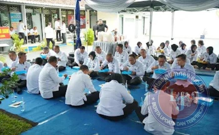 Selanjutnya, rombongan menyantap makan siang bersama warga binaan. Menu yang disajikan sama persis dengan yang dikonsumsi warga binaan, tanpa pembeda sedikit pun. Semua duduk beralas tikar di lantai, tanpa kursi, mencerminkan semangat kesetaraan, kebersamaan, dan empati dalam layanan pemasyarakatan.