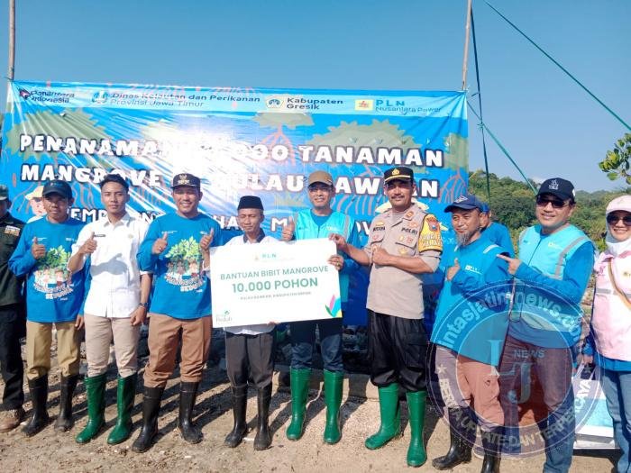 Sebanyak 10.000 bibit mangrove ditanam secara serentak dalam kegiatan yang melibatkan berbagai elemen masyarakat. Hadir dalam kesempatan ini Kapolsek Tambak, Iptu Mustofa, bersama jajaran Forkopimcam Tambak, perwakilan BBKSDA Bawean, PLN Nusantara Power Bawean, Kepala Desa Teluk Jatidawang beserta perangkat desa, tokoh masyarakat, Dinas Perikanan Bawean, masyarakat setempat, mahasiswa KKN dari Universitas Gadjah Mada (UGM), hingga para pelajar dari MI dan SDN Telukjati.
