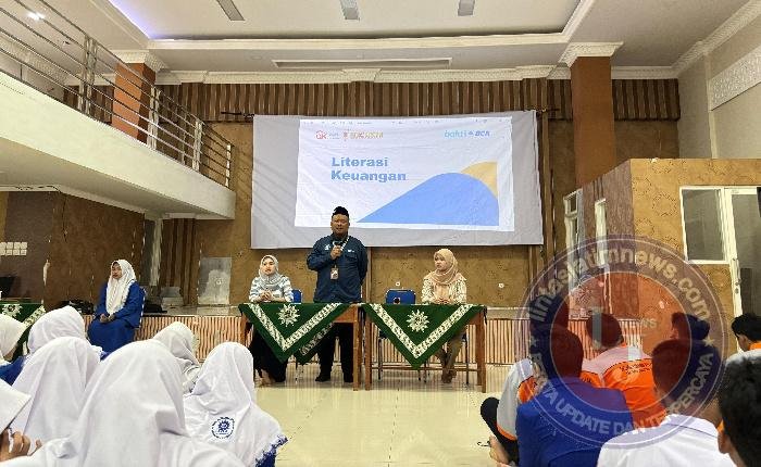 Ratusan siswa dari kelas X dan XII memadati aula sekolah sejak pagi. Tidak hanya untuk mendengarkan materi, tetapi juga berinteraksi aktif membahas berbagai topik keuangan mulai dari manajemen uang saku, pentingnya menabung, mengenal produk perbankan, hingga bahaya laten pinjaman online (pinjol) ilegal.
