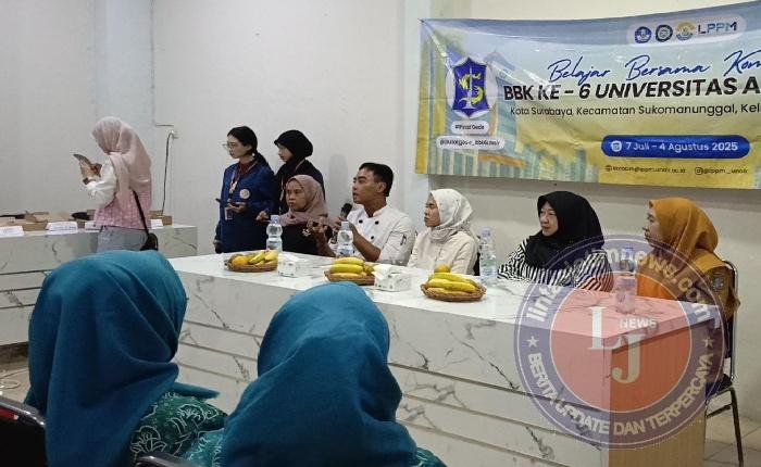 SURABAYA lintasjatimnews – Tim Belajar Bersama Komunitas (BBK) 6 Universitas Airlangga mengadakan sosialisasi bertema “UMKM Goes to Hotel” yang bertempat di Kantor Kelurahan Putat Gede, Kec. Sukomanunggal, Kota Surabaya pada hari Selasa (29/7/25).