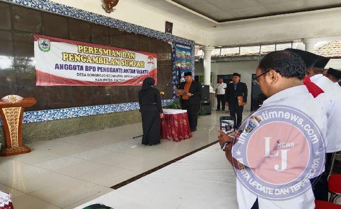 PACITAN lintasjatimnews – Suasana khidmat dan penuh semangat kebangsaan menyelimuti Pendopo kecamatan Donorojo, Kabupaten Pacitan, pada Kamis pagi (31/7/2025), saat digelarnya acara Pengambilan Sumpah dan Janji Pergantian Antar Waktu (PAW) Anggota Badan Permusyawaratan Desa (BPD) Donorojo.