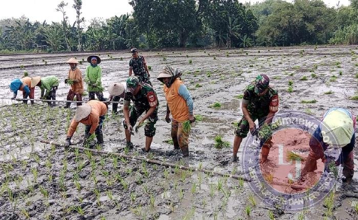 Babinsa Menanam Padi di Tengah Panas dan Lumpur
