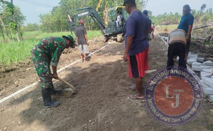 NGAWI lintasjatimnews – Babinsa Posramil Gerih Kodim 0805 Ngawi Sertu Agus Suprapto melaksanakan kerja bakti bersama masyarakat binaan dengan sasaran perbaikan jalan kampung penghubung Desa, tepatnya di Desa Gerih, Kecamatan Gerih, Kabupaten Ngawi. Sabtu (02/08/2025).