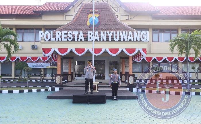 BANYUWANGI lintasjatimnews — Kapolresta Banyuwangi, Kombes Pol. Rama Samtama Putra, S.I.K., M.Si., M.H., memimpin Apel Jam Pimpinan di halaman Mapolresta Banyuwangi, Senin (4/8/2025).