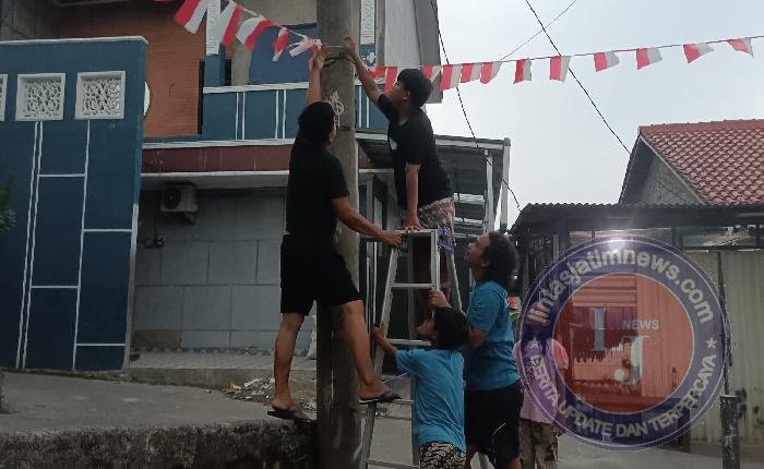 Seperti warga Rt 03 Rw 02, Cipayung, Depok, Jawa Barat, pada Minggu ( 03/08/2025), bergotong royong menghias lingkungannya dengan nuansa merah putih.