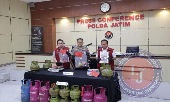 SURABAYA lintasjatimnews – Polda Jawa Timur (Jatim) melalui Direktorat Reserse Kriminal Khusus (Ditreskrimsus) kembali berhasil membongkar praktik ilegal pemindahan isi Liquefied Petroleum Gas (LPG) subsidi dari tabung 3 kg ke 12 kg.