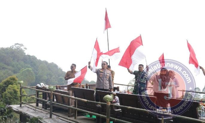 Momentum diawali dengan pengibaran bendera Merah Putih oleh seluruh peserta, mencerminkan semangat nasionalisme yang tumbuh dari desa-desa produktif di lereng Gunung Lawu.