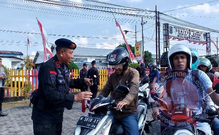 PAMEKASAN lintasjatimnews – Dalam Rangka menyambut hari kemerdekaan Republik Indonesia yang ke -80 tahun Satbrimob Polda Jatim, Kabupaten Pamekasan Madura Jawa Timur, bagi – bagi bendera Merah Putih.