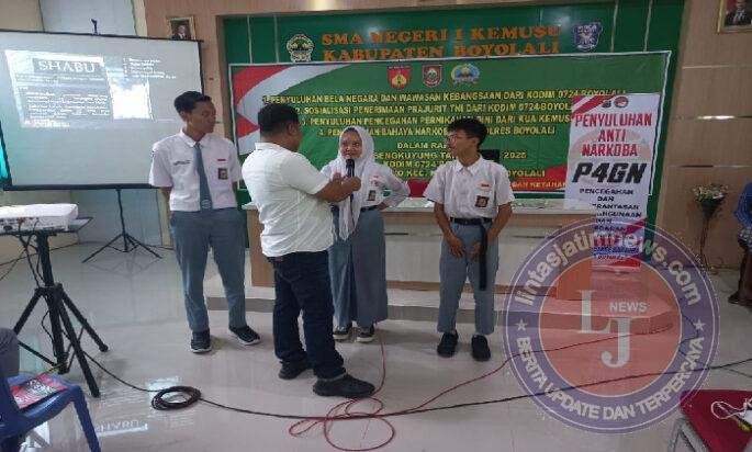 BOYOLALI lintasjatimnews – Dalam rangka mendukung pembangunan sumber daya manusia di wilayah pedesaan, Satgas TNI Manunggal Membangun Desa (TMMD) Sengkuyung Tahap III Tahun 2025 Kodim 0724/Boyolali menggelar kegiatan sosialisasi dan penyuluhan tentang bahaya narkoba serta pernikahan dini. Kegiatan ini berlangsung di Aula SMA Negeri I Kemusu, Dukuh Ngleban, Desa Klewor, Kecamatan Kemusu, Kabupaten Boyolali, pada Selasa (05/08/2025).