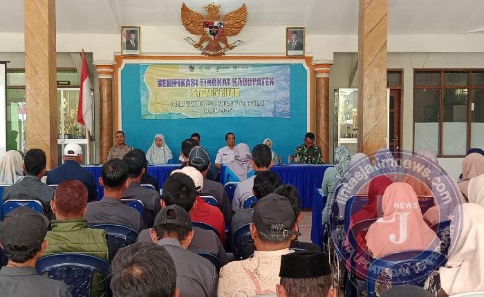 PACITAN lintasjatimnews – Upaya mendukung program pemerintah daerah dan memperkuat sinergi 5 pilar, Danramil 0801/06 Bandar yang diwakili Pelda Triono menghadiri rapat verifikasi dan tinjau lokasi program Sanitasi Total Berbasis Masyarakat (STBM) Tahun 2025 di Balai Desa Tumpuk, Kecamatan Bandar, Kabupaten Pacitan, Kamis (7/8/2025).
