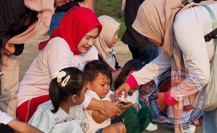 Seperti yang dilakukan Pesanggrahan Berkah Penyu Pacitan melepasliarkan ratusan anak penyu atau tukik bersama anak-anak TK Kartika IV-18 Pacitan di Kabupaten Pacitan pada Jumat (8/8/2025) sore di kawasan Pantai Pancer Dorr, Kelurahan Ploso, Pacitan.