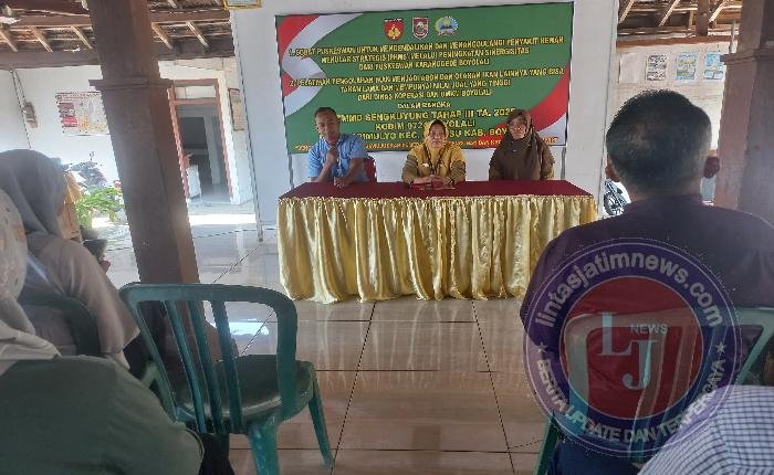 BOYOLALI lintasjatimnews – Untuk mencegah penyebaran penyakit menular pada hewan ternak, Satgas TNI Manunggal Membangun Desa (TMMD) Sengkuyung Tahap III Tahun 2025 Kodim 0724/Boyolali bersama Dinas Peternakan (Disnak) Kabupaten Boyolali melalui Puskeswan Karanggede menggelar sosialisasi pengendalian dan penanggulangan penyakit hewan menular. Kegiatan berlangsung di Aula Balai Desa Sarimulyo, Kecamatan Kemusu, Senin (11/08/25).