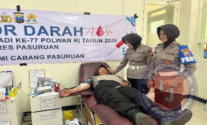 PASURUAN lintasjatimnews — Dalam rangka memperingati Hari Jadi ke-77 Polisi Wanita (Polwan) Republik Indonesia, Polwan Polres Pasuruan menggelar kegiatan donor darah yang berlangsung pada Kamis (14/8/2025) di Kantor Palang Merah Indonesia (PMI) Kabupaten Pasuruan. Acara dimulai pukul 08.00 WIB hingga selesai dengan suasana penuh kekeluargaan dan semangat berbagi.