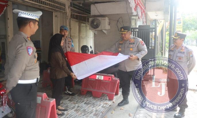 Kapolres Pasuruan AKBP Jazuli Dani Iriawan bersama jajaran turun langsung berkeliling desa-desa di wilayah Kecamatan Bangil untuk membagikan sekaligus membantu memasang bendera di pemukiman warga.