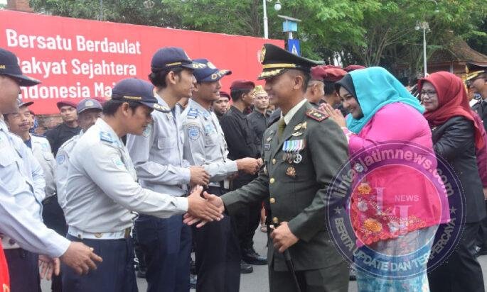 Momentum semakin berkesan ketika jajaran Forkopimda Trenggalek, termasuk Dandim 0806, menyalami seluruh pasukan upacara. Tindakan tersebut menjadi simbol apresiasi terhadap dedikasi para peserta yang berdiri tegak di bawah kibaran Merah Putih.