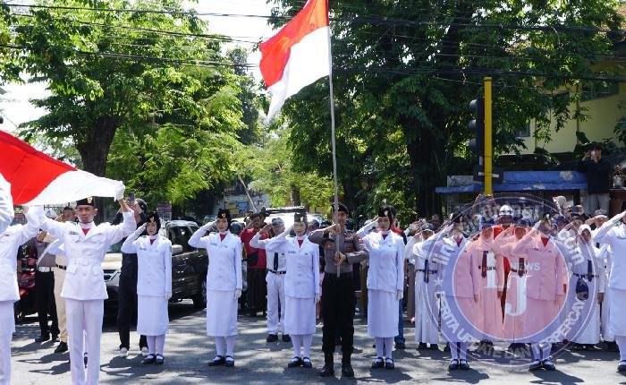 PASURUAN lintasjatimnews – Dalam rangka memperingati Hari Ulang Tahun (HUT) ke-80 Kemerdekaan Republik Indonesia, Satuan Lalu Lintas (Satlantas) Polres Pasuruan menggelar upacara detik-detik proklamasi di tengah perempatan traffic light Gudang Garam, Bangil, Kabupaten Pasuruan, pada Minggu (17/8/2026) pagi.