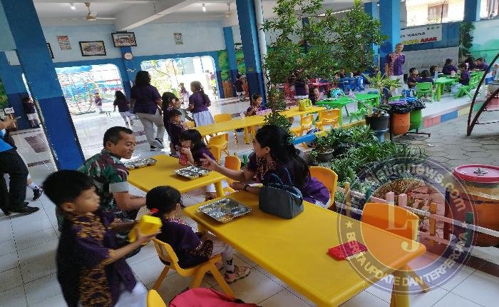 Sertu Watono juga menjelaskan bahwa pendampingan ini bertujuan memastikan kelancaran pembagian makanan sekaligus memberikan edukasi kepada para siswa mengenai pentingnya pola makan sehat.