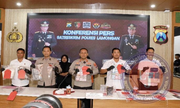 LAMONGAN lintasjatimnews – Polres Lamongan Polda Jawa Timur dalam hal ini Satuan Reserse Kriminal berhasil mengamankan tersangka kasus penipuan dan penggelapan yang dikemas dengan Arisan Bodong.