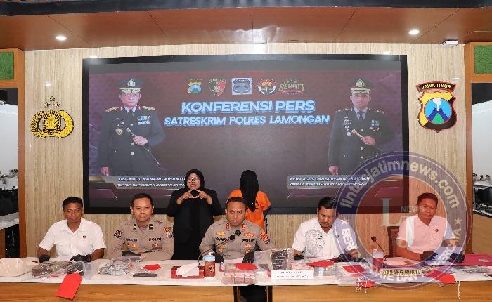 LAMONGAN lintasjatimnews – Polres Lamongan Polda Jawa Timur dalam hal ini Satuan Reserse Kriminal berhasil mengamankan tersangka kasus penipuan dan penggelapan yang dikemas dengan Arisan Bodong.