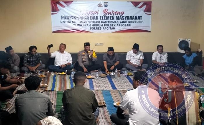 PACITAN lintasjatimnews – Guna menciptakan situasi Kamtibmas yang kondusif di wilayah kecamatan Arjosari, Forkopimca bersama elemen masyarakat duduk bersama membahas situasi yang terjadi saat ini di wilayah Pacitan, pada Selasa (2/9/2025)malam bertempat di Mapolsek Arjosari, Kec. Arjosari, Kab. Pacitan.