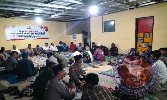 kegiatan ngopi bareng bersama elemen masyarakat untuk menyikapi situasi yang berkembang dengan maksud meningkatkan solidaritas dan sinergitas untuk menjaga keamanan di wilayah Kec. Arjosari yang kondusif dan terkendali.