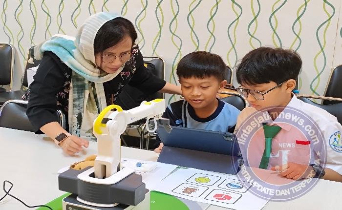 SURABAYA lintasjatimnews – Tujuh orang dosen PENS yang tergabung dalam Grup Riset Human Centric Multimedia mengembangkan aplikasi berbasis Augmented Reality (AR) untuk membantu anak-anak memahami konsep ruang, gerak, dan hubungan sebab-akibat. Aplikasi yang diimplementasikan pada lengan robot Dobot Magician Lite ini menggunakan teknologi Digital Twin.