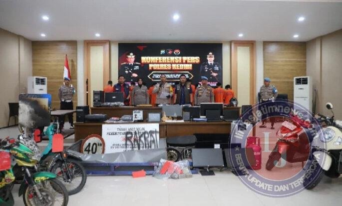 “Modusnya ada yang menjarah, membawa senjata tajam, mencuri bendera warga, sampai menyerang anggota Polri yang sedang bertugas,” terang AKBP Bramastyo di Mapolres Kediri.