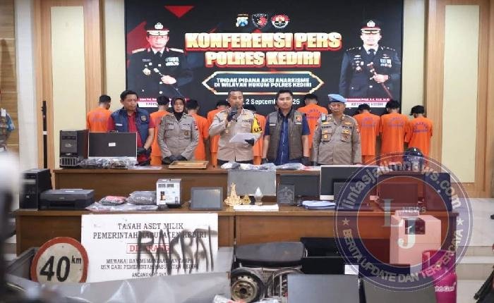 KEDIRI lintasjatimnews – Polres Kediri Polda Jawa Timur (Jatim) telah menetapkan 28 tersangka kerusuhan dan penjarahan di Kantor Pemerintah Kabupaten Kediri dan Gedung DPRD pada Sabtu 30 Agustus 2025 yang lalu.