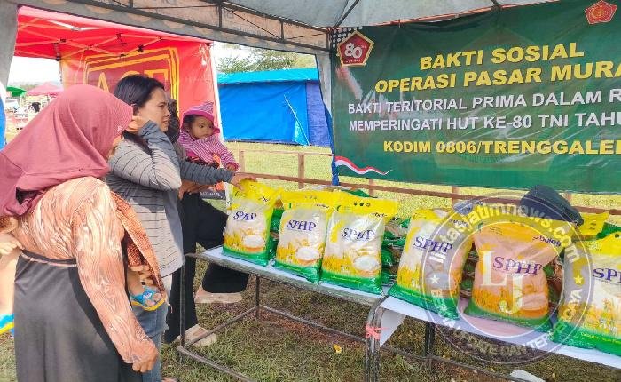 Bati Komsos Kodim 0806/Trenggalek, Serma Abdul Gofur, menegaskan bahwa program ini merupakan wujud nyata sinergi lintas sektor. “Kodim 0806/Trenggalek bersama Bulog Trenggalek dan Dinas Pertanian akan terus menjaga stabilitas harga serta ketersediaan pangan bagi masyarakat. Operasi pasar murah ini bukti nyata hadirnya TNI di tengah rakyat,” ujarnya.