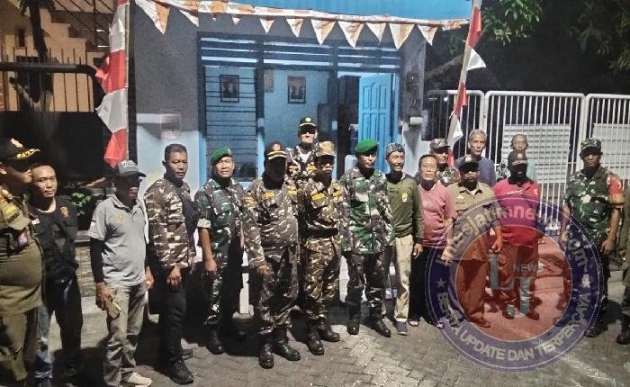 SURABAYA lintasjatimnews – Makoramil 0830/09 gubeng melaksanakan patroli PAM(pengamanan) swakarsa gabungan bersama Polisi pamong praja, FKPPI (forum komunikasi putra-putri purnawirawan indonesia) banser (Barisan Serbaguna), arek jogoboyo Kecamatan gubeng (13/09/25) di Makoramil 0830/09 gubeng.
