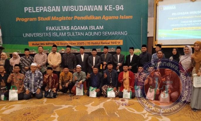 SEMARANG lintasjatimnews – Bertempat di ruang pertemuan hotel MG Setos lantai 16 telah dilaksanakan Pelepasan Wisuda 94 MPAI (Magister Pendidikan Agama Islam) Unissula (Universitas Islam Sultan Agung) Semarang.