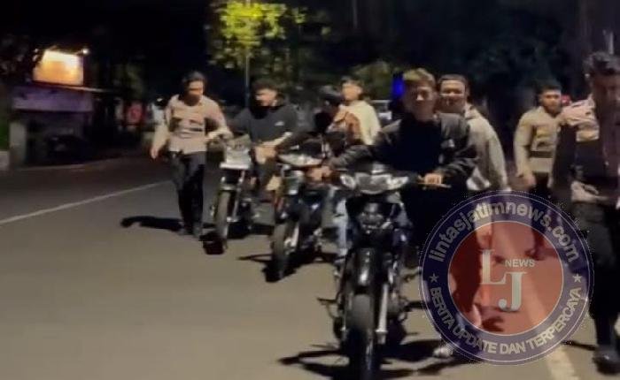Belasan pemuda yang nekat balapan liar beserta motornya digiring ke Polsek Kedungkandang jajaran Polresta Malang Kota, Sabtu dinihari (13/9/25).