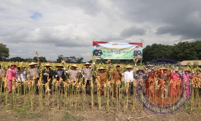 Perkuat Ketahanan Pangan Polres Blitar Kota bersama Forkopimda Panen Raya Jagung Kuartal III
