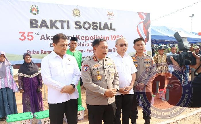 BATAM lintasjatimnews – Korps Binmas Baharkam Polri menyelenggarakan bakti sosial dalam rangka memperingati 35 Tahun Ikatan Keluarga Dhira Brata (IKDB) Alumni Akpol Angkatan 1990 di Perumahan Rempang Eco City, Kelurahan Sembulang, Kecamatan Galang, Batam. Kegiatan dengan tema “Bersama Berbagi Tak Bertepi” ini dihadiri oleh sejumlah pejabat tinggi Polri dan diterima dengan antusias oleh masyarakat setempat.(18/9/25).