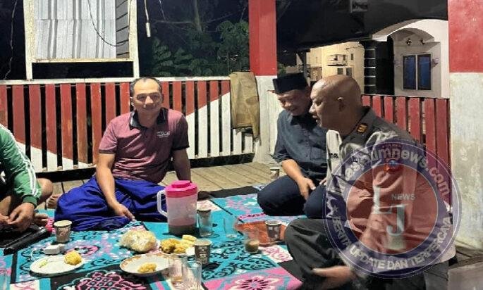 Suasana akrab tercipta saat warga dan aparat kepolisian duduk bersama membicarakan situasi kamtibmas di lingkungan mereka.