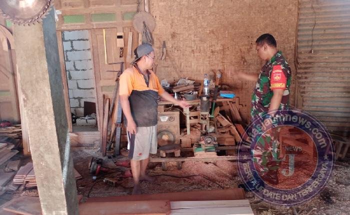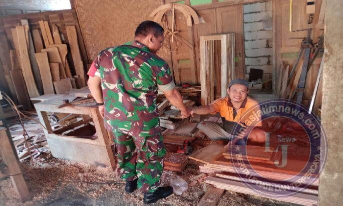 BOYOLALI lintasjatimnews – Dalam upaya mendukung keberlangsungan produksi UMKM di wilayah binaannya, Babinsa Koramil 13/Nogosari Kodim 0724/Boyolali, Serka Siswanto, menyambangi sentra pengrajin mebel kayu jati di Dukuh Cabean, Desa Sembungan, Kecamatan Nogosari, Senin (22/09/25).
