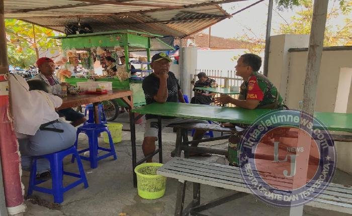 Wujudkan Wilayah Tetap Aman, Babinsa Kepatihan Wetan Laksanakan Patroli dan Sambangi Pedagang Kaki Lima