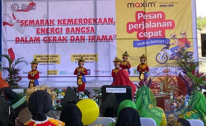 JEMBER lintasjatimnews – Maxim sukses menyelenggarakan Lomba Tari Kreasi Tingkat TK se-Kota Jember untuk memberikan wadah bagi anak-anak untuk meningkatkan kreativitasnya. Penyelenggaraan agenda ini sejalan dengan komitmen Maxim untuk memberikan kontribusi nyata kepada masyarakat, tidak hanya pada industri transportasi, melainkan pada aspek pendidikan dan nilai sosial.