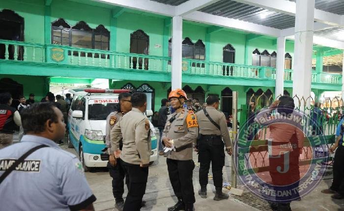Personel disebar ke sejumlah titik strategis mulai dari pintu masuk, posko pengamanan, hingga mendampingi tim gabungan yang berada di area reruntuhan.