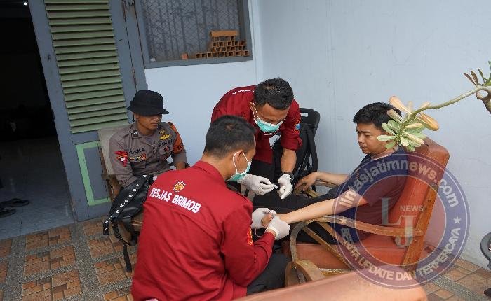 Kehadiran tim kesehatan Brimob Polda Jatim di lokasi mendapat sambutan positif dari warga sekitar.