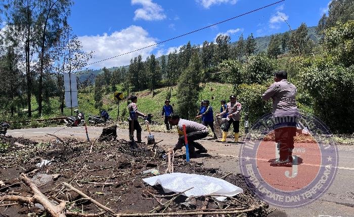 PROBOLINGGO lintasjatimnews – Aksi cepat tanggap ditunjukkan personel Polsek Sukapura Polres Probolinggo dalam menangani bencana tanah longsor yang menutup jalur menuju wisata Gunung Bromo, Kabupaten Probolinggo, pada Rabu (1/10/2025).
