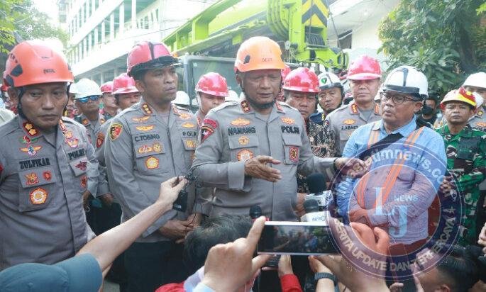 Kapolda Jatim menegaskan, proses pencarian dilakukan tanpa henti selama 24 jam dengan dukungan penuh personel, peralatan, hingga tenaga ahli konstruksi.