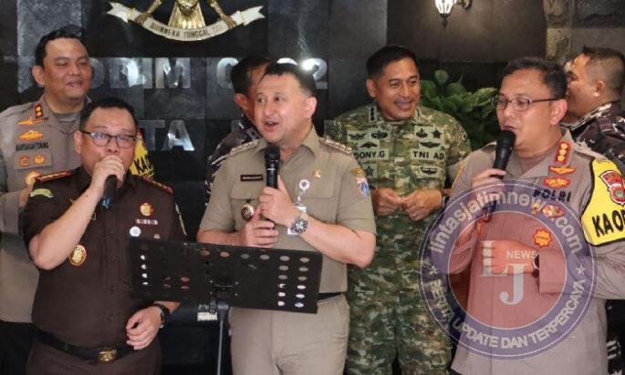 Kajari Jakarta Utara Dr. Yunto Safarillo H.T., Danpuspomal Letkol Arnaz, Danyon Arhanud 6/Bay Letkol M. Arifin.