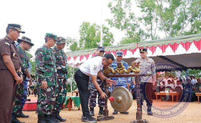 Acara selanjutnya, pernyataan Resmi Pembukaan TMMD ke-126 Tahun 2025 ditandai Dengan Pemukulan Gong oleh Inspektur Upacara dan Forkopimda Kabupaten Pacitan.